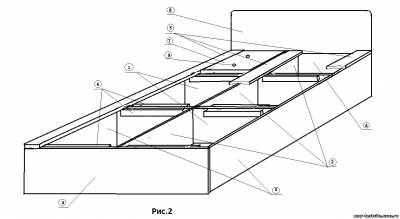В конструкции кровати из комплекта спального гарнитура Татьяна (Фото1) передняя и задняя спинки выполнены из того же ЛДСП, что и все изделие. Задняя стенка украшена декоративной лентой на клеевой основе. Если вам кажется, что такое дизайнерское решение недостаточно эстетично, всегда можно заказать стенки для кровати, изготовленные из МДФ или даже дерева. Правда, стоимость готового изделия значительно возрастет. И еще несколько слов о порядке сборки кровати. После распила ЛДСП из полученных заготовок делаются детали. Этот процесс довольно подробно описан в статье «Пошаговая инструкция изготовления корпусной мебели». Затем можно приступать непосредственно к сборке кровати. Вашему вниманию предлагается небольшая инструкция по сборке кровати: