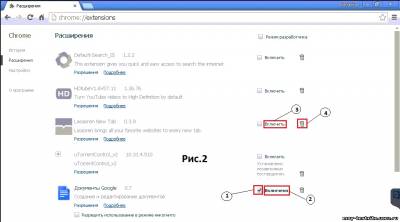 Для начала удалите те вирусы, которые вы сами установили на свой ПК. Чтобы сделать это, воспользуйтесь бесплатным диском восстановления Rescue Disk от лаборатории Kaspersky, или загрузочным диском LiveCD ESET NOD32 от разработчика антивирусных программ NOD32. Эти диски, точнее их iso образы, вы можете свободно скачать с сайтов разработчиков. Как пользоваться подобными продуктами, подробно описано в статье «Что делать, если антивирусная программа не может удалить вирус». Чем хороши указанные диски, так это тем, что при использовании их антивирусные программы наверняка смогут выявить и удалить вирусы на вашем компьютере. Что касается программы «BDE_CRP», она наглядно отображается в «Панели Управления» в разделе «Программы и компоненты», и ее целесообразно сразу удалять после выявления. После того, как вы «расправитесь» с вирусами, приступайте к настройке ваших браузеров. Удаление тулбаров производится так же, как и удаление программ с помощью панели управления. Те, кто раньше этого не делал, могут прочитать статью «Удаление антивируса Avast internet security». Что касается удаления расширений, рассмотрим это на примере браузера Google Chrome. Запустите браузер Google Chrome на вашем компьютере и в новом окне нажмите кнопку «Настройка» (см.1 Рис.1). В открывшемся меню выберите вкладку «Дополнительные инструменты» (см.2 Рис.1). Перед вами откроется меню этой вкладки, где вам нужно выбрать вкладку «Расширения» (см.3 Рис.1). После этого у вас откроется окно, подобное Рис.2. В идеале на вашем компьютере не должно быть активных (включенных) расширений, но, если вас донимает реклама, а окна браузера открываются самопроизвольно, то вы наверняка найдете включенные расширения. Возле каждого расширения (справа от его названия) имеется кнопка (чек бокс) «Включено» (см.1 Рис.2). Уберите галочки из чек боксов, при этом надпись «Включено» (см.2 Рис.2) поменяется на «Включить» (см.3 Рис.2), а название самого расширения станет более блеклым. При желании, вы можете удалить расширения, воспользовавшись кнопками «Корзина» (см.4 Рис.2) Если вы правильно выполнили все пункты алгоритма удаления рекламы из браузера, то после ваших настроек ваш браузер перестанет самопроизвольно запускаться, а в его окне будет видна только та реклама, которую разместил владелец сайта, который вы посетили в данный момент. Иценко Александр Иванович Статьи со схожей тематикой: 1. «Отключение рекламы в интернете». | |