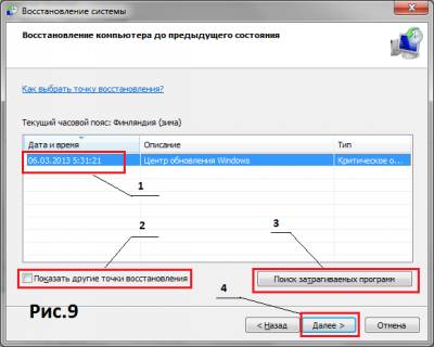 ВОССТАНОВЛЕНИЕ ОПЕРАЦИОННОЙ СИСТЕМЫ Наверное, практически все пользователи сталкивались с ситуацией, когда все попытки включить компьютер оказывались безуспешными. Даже если кого Бог и миловал от такой ситуации, то у них наверняка были случаи, когда после установки той или иной программы, или же просто после обновления системы сбивались настройки, менялось разрешение экрана или происходили другие неприятности. Такое может происходить, даже если вы случайно забрели на сомнительный сайт. Возможны ситуации, когда нежелательные изменения на вашем компьютере происходят сами по себе (перестала корректно работать та или иная программа). Хотя, если быть точным, вы просто не заметили причины изменений. В 99 из 100 таких случаев компьютер можно восстановить по точке восстановления. В статье «Удаление следов Avast из реестра», я говорил, что прежде чем вносить изменения в реестр, необходимо обязательно создать точку восстановления. Своевременное создание точек восстановления в сочетании с резервным копированием и другими мерами защиты вашего компьютера позволит избежать случаев необратимого повреждения вашей операционной системы и, как следствие, утраты данных. Бытует мнение, что создание точек восстановления – это излишние меры предосторожности, которые малоэффективны. Некоторые «спецы» говорят, мол, зачем это делать, лучше переустановить систему, и все будет нормально, якобы это даже полезно. Это абсолютно неверное суждение. Так могут утверждать только те, кто не пользуется платными программами, не сохраняет на своем ПК ценную информацию и, вообще, не умеет обслуживать компьютер. Итак, вернемся к теме. Восстановление компьютера по точке восстановления можно разбить на три этапа: 1. Активация функции восстановления. Эта функция активируется автоматически при установке лицензионной операционной системы. На нелицензионных вариантах она зачастую бывает отключена. В любом случае, в начале эксплуатации ПК необходимо проверить, включена ли эта функция. 2. Создание точек восстановления. В Windows ХР точки восстановления создаются автоматически ежедневно через каждые 24 часа (в Windows 7 точки автоматически не создаются). Кроме этого, точки восстановления создаются при установке некоторых обновлений для операционных систем, при установке некоторых программ, при оптимизации файловой системы компьютера, с помощью некоторых программ (они обычно запрашивают о необходимости создания точки), а также вручную. Последний вариант создания точки самый важный, и его необходимо выполнять перед установкой новых программ или перед редактированием реестра. 3. Само восстановление системы, как таковое. Точки восстановления представляют собой «моментальный снимок» состояния системы, сохраненный на компьютере. При этом в «снимок» не включаются файлы, создаваемые пользователем, музыка, видео и т.д. Но, зато, восстановление системы по точке восстановления не приводит к утрате последних пользовательских данных, сохраненных на ПК. Прежде чем воспользоваться функцией восстановления, необходимо проверить ее активирование. Для этого нажмите кнопку «Пуск» и в появившемся меню выберите «Панель управления» (см.1 Рис.1). В новом окне (Рис.2) выберите «Система и безопасность». Далее, в следующем окне (Рис.3) выберите «Система». (Для тех, кто совсем не имеет опыта экспл