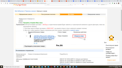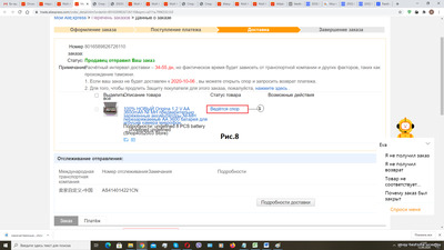 ПОРЯДОК ОТКРЫТИЯ СПОРОВ НА ALIEXPRESS Большинство простых людей стараются приобрести необходимые им вещи хорошего качества, но по низкой цене. Поэтому они обращаются в интернет-магазины или ищут торговые площадки, работающие посредниками между интернет-магазинами и покупателями. Обычно осуществление покупок через торговые площадки для покупателей гораздо удобней, чем непосредственно покупка в интернет-магазинах, т.к. при этом возможна экономия на доставке товара покупателю, а также существует некоторая защита покупателя от недобросовестных продавцов, которые, пользуясь удаленностью покупателя от интернет-магазина (отсутствием непосредственного контакта), пытаются впарить им откровенную туфту. Эта защита осуществляется путем предоставления возможности открытия и урегулирования споров между продавцом и покупателем, которые могут возникнуть, если товар, приобретенный в интернет-магазине через торговую площадку, вовремя не дошел до покупателя или не оправдал его ожиданий. В этом споре торговая площадка выступает своеобразным арбитром, а защита является обоюдной и для покупателя, и для продавца от недобросовестных действий оппонента. К таким торговым площадкам относится многим хорошо известный AliExpress. В этой статье вашему вниманию предлагается пошаговый порядок открытия споров на AliExpress на примере открытого и выигранного мною спора. Внимание! 1. Покупатель может открыть Спор только после проверки его претензий через автоответчик AliExpress. 2. Данная статья дополнена небольшим видео, в котором приведены доказательства предоставленные на AliExpress при ведении спора с продавцом, пытавшимся продать мне заведомо неисправные никель-металлогидридные аккумуляторы. Спор был мною выигран. Ссылка на видео. Если у покупателя возникли претензии к продавцу, он может обратиться непосредственно к нему (в интернет-магазин). Но, к сожалению, нередко, интернет-магазины игнорируют такие обращения, а иногда отвечают в стиле «сам дурак». В таком случае покупателю остается только обратиться к AliExpress путем открытия СПОРА, для этого ему необходимо: Зайти на AliExpress, как зарегистрированный пользователь. Затем нужно найти раздел «Навигация по AliExpress» (см.1 Рис.1) и нажать кнопку «Споры и жалобы» (см.2 Рис.1). На вкладке «Защита покупателя» нажать кнопку «Открыть спор» (см.1 Рис.2). Обратиться к Еве (автоответчику). Для этого выбрать из списка (см.1 Рис.3) одну из кнопок. В моем случае «Товар не соответствует» (см.2 Рис.3). В появившемся окне беседы с автоответчиком «Ева» (см.1 Рис.4) следует выбрать своего обидчика (см.2 Рис.4) и щелкнуть по нему левой кнопкой мыши. В окне «Выбрать этот заказ» (см.1 Рис.5) подтвердить, что вы не ошиблись с выбором обидчика, нажав кнопку «Подтвердить» (см.2 Рис.5). Теперь нужно будет дать ответы на стандартные вопросы: А. Информация о получении заказа и претензиях к нему (см.1 Рис.6). В моем случае «Да, но товар не соответствует описанию» (см.2 Рис.6). Б. В поле «Введите свои вопросы» (см.1 Рис.7) напишите свое обоснование. Если в поле настроек вы выбрали русский язык для «беседы» с Евой, то и обоснование должно быть на русском. Если что-то будет не так, автоответчик вам подскажет. После этого нажмите кнопку отправить, либо нажмите кнопку «+» для добавления медиафайла(ов), кнопки, для добавления которых, появятся после того, как вы введете текст. Если вы получил